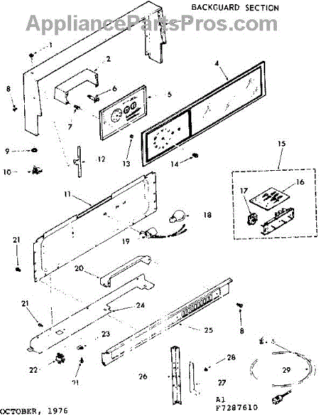 Parts for Kenmore 103.7287610 (1037287610, 103 7287610): Backguard Section Parts