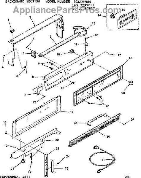 Parts for Kenmore 103.7297810 (1037297810, 103 7297810): Backguard Section Parts
