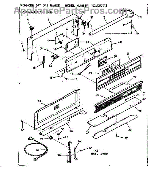 Parts for Kenmore 103.7297912 (1037297912, 103 7297912): Backguard Section Parts