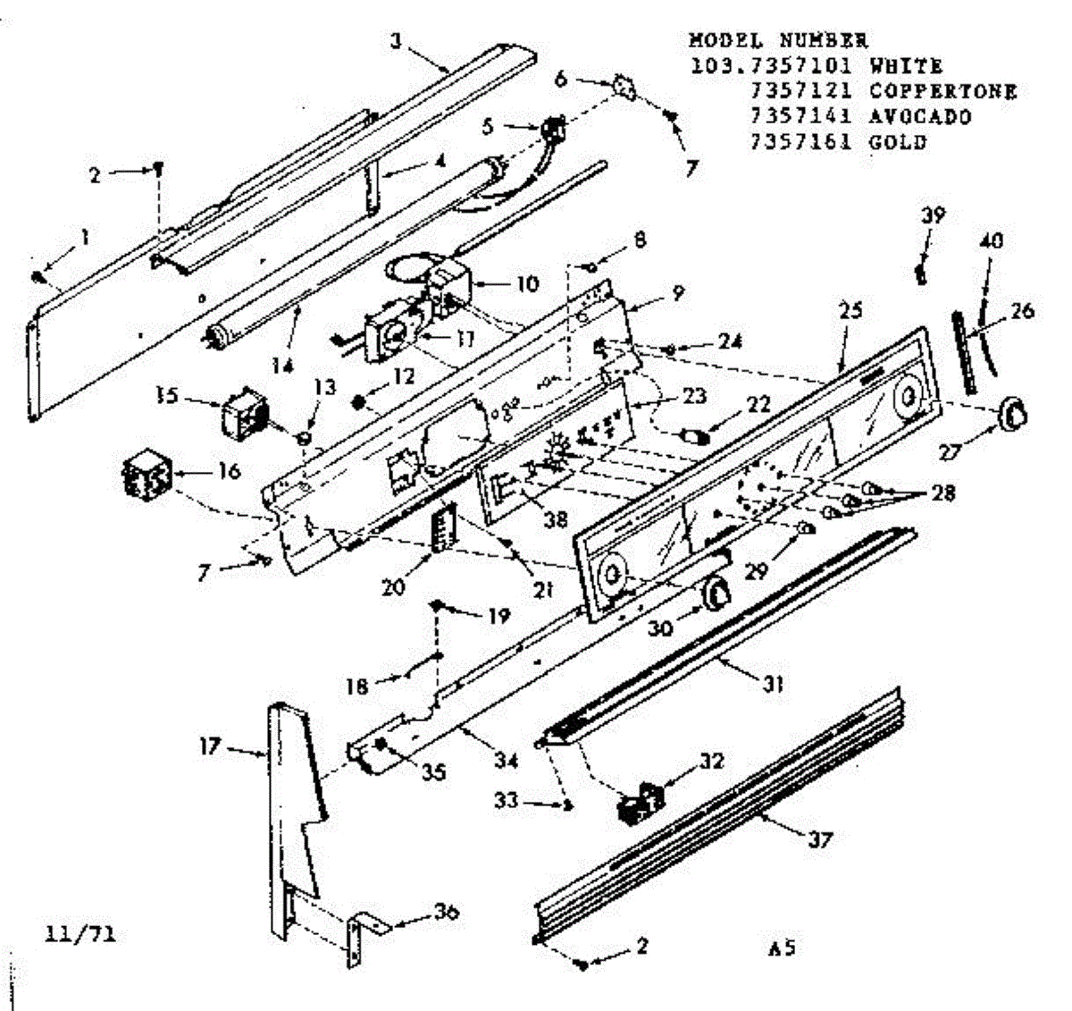 Parts for Kenmore 103.7357161 (1037357161, 103 7357161): Backguard Section Parts