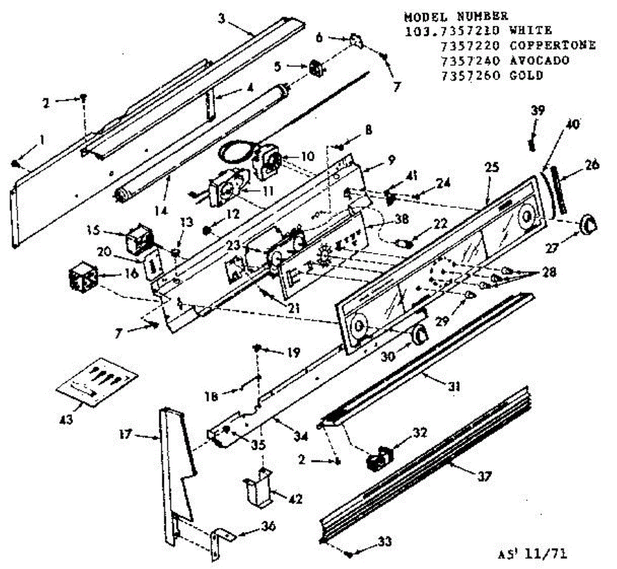 Parts for Kenmore 103.7357260 (1037357260, 103 7357260): Backguard Section Parts