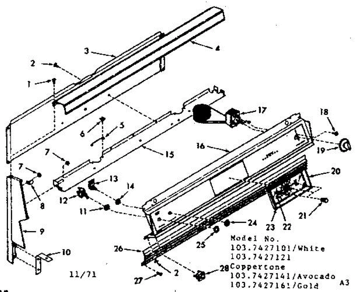 Parts for Kenmore 103.7427121 (1037427121, 103 7427121): Backguard Section Parts