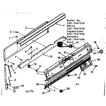 Parts for Kenmore 103.7447210 (1037447210, 103 7447210): Backguard Section Parts