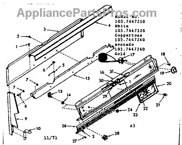Parts for Kenmore 103.7447260 (1037447260, 103 7447260): Backguard Section Parts