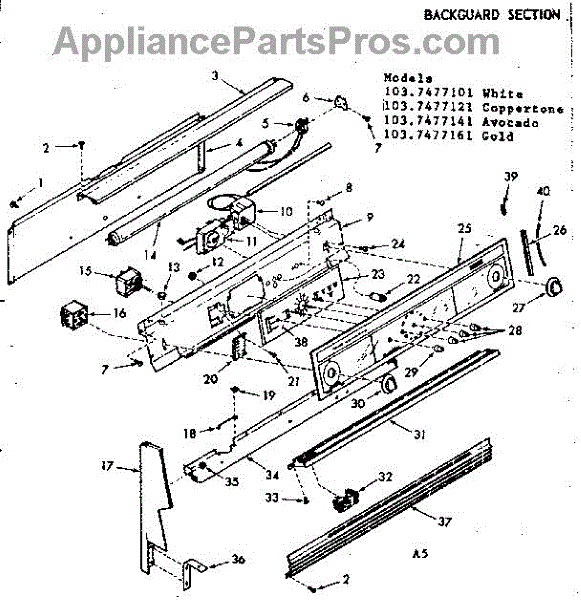 Parts for Kenmore 103.7477141 (1037477141, 103 7477141): Backguard Section Parts