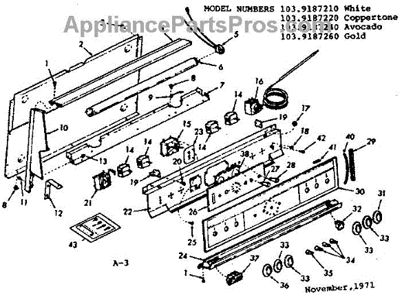 Parts for Kenmore 103.9187260 (1039187260, 103 9187260): Backguard Section Parts
