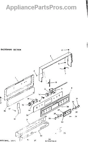 Parts for Kenmore 103.9327610 (1039327610, 103 9327610): Backguard Section Parts