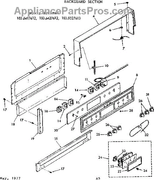 Parts for Kenmore 103.9327613 (1039327613, 103 9327613): Backguard Section Parts