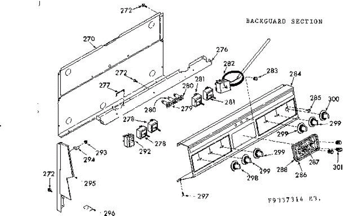 Parts for Kenmore 103.9337344 (1039337344, 103 9337344): Backguard Section Parts