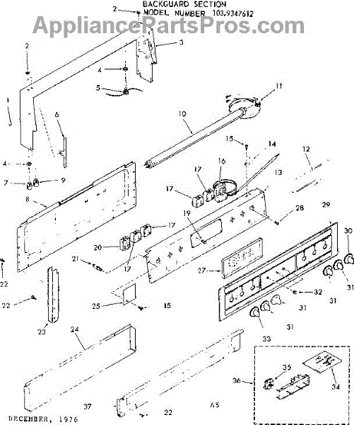 Parts for Kenmore 103.9347612 (1039347612, 103 9347612): Backguard Section Parts