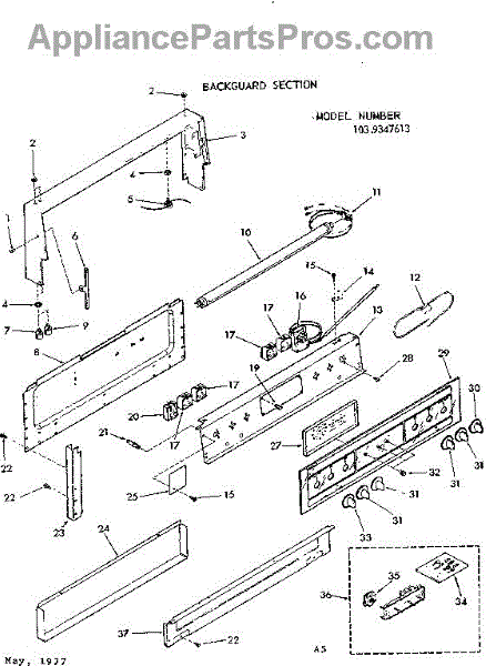 Parts for Kenmore 103.9347613 (1039347613, 103 9347613): Backguard Section Parts