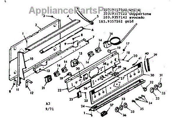 Parts for Kenmore 103.9357122 (1039357122, 103 9357122): Backguard Section Parts