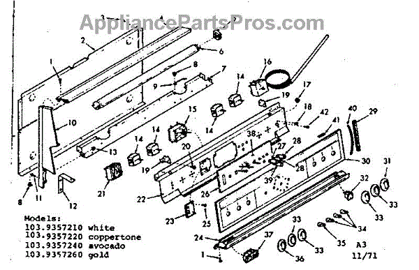 Parts for Kenmore 103.9357220 (1039357220, 103 9357220): Backguard Section Parts