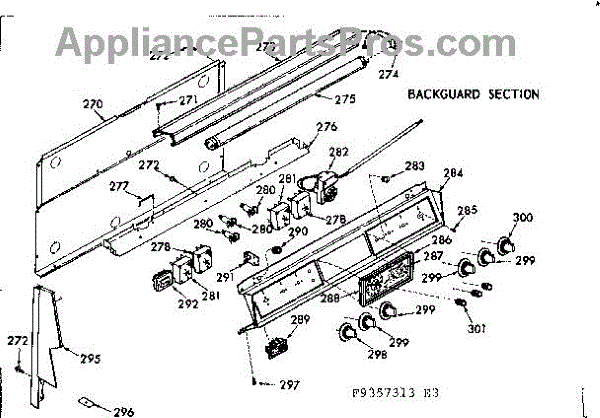 Parts for Kenmore 103.9357323 (1039357323, 103 9357323): Backguard Section Parts