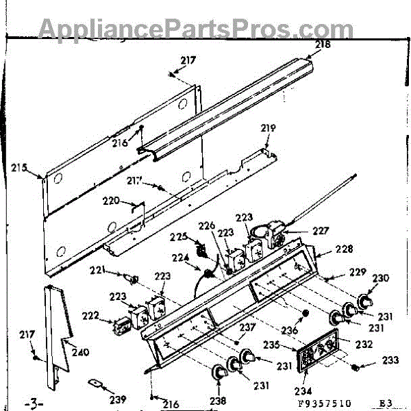 Parts for Kenmore 103.9357540 (1039357540, 103 9357540): Backguard Section Parts