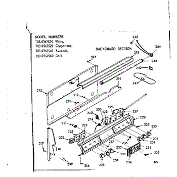 Parts for Kenmore 103.9367540 (1039367540, 103 9367540): Backguard Section Parts