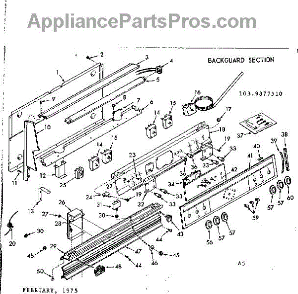 Parts for Kenmore 103.9377520 (1039377520, 103 9377520): Backguard Section Parts