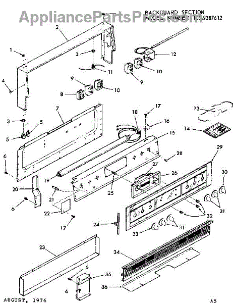 Parts for Kenmore 103.9387612 (1039387612, 103 9387612): Backguard Section Parts