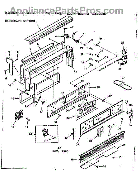 Parts for Kenmore 103.9567812 (1039567812, 103 9567812): Backguard Section Parts