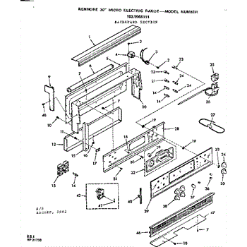 Parts for Kenmore 103.9568111 (1039568111, 103 9568111): Backguard Section Parts