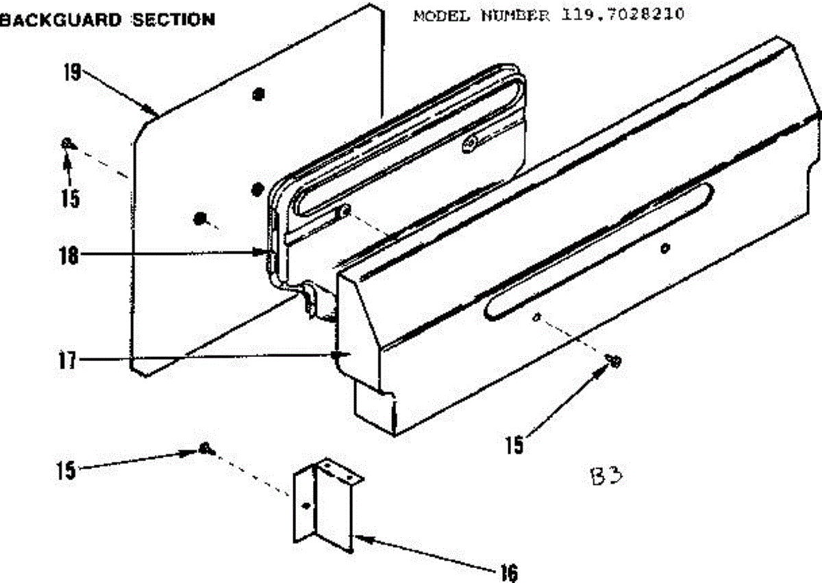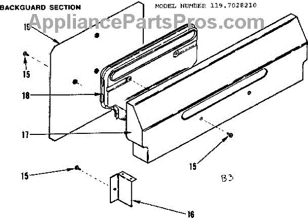 Parts for Kenmore 119.7028210 (1197028210, 119 7028210): Backguard Section Parts
