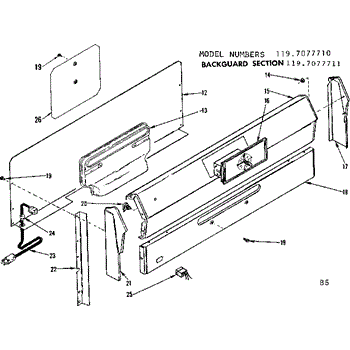 Parts for Kenmore 119.7077710 (1197077710, 119 7077710): Backguard Section Parts