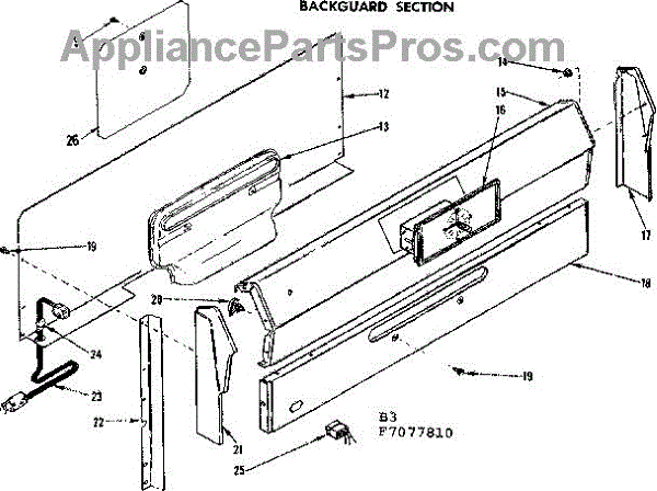 Parts for Kenmore 119.7077810 (1197077810, 119 7077810): Backguard Section Parts