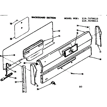 Parts for Kenmore 119.7078011 (1197078011, 119 7078011): Backguard Section Parts