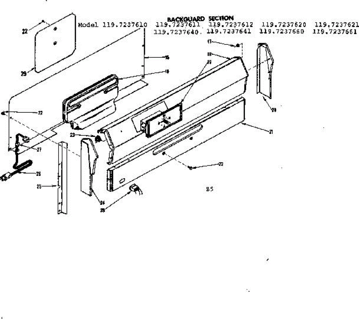 Parts for Kenmore 119.7237611 (1197237611, 119 7237611): Backguard Section Parts