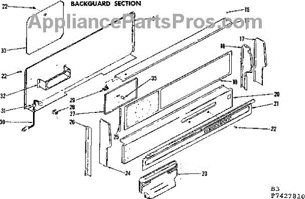 Parts for Kenmore 119.7427810 (1197427810, 119 7427810): Backguard Section Parts