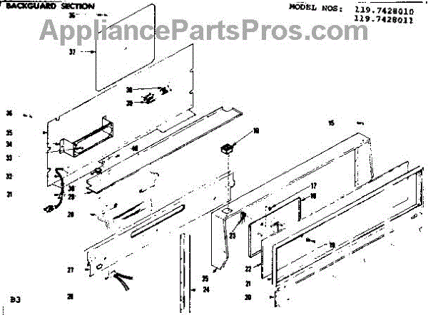 Parts for Kenmore 119.7428010 (1197428010, 119 7428010): Backguard Section Parts