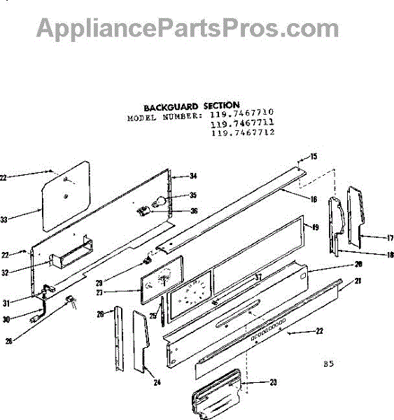 Parts for Kenmore 119.7467710 (1197467710, 119 7467710): Backguard Section Parts