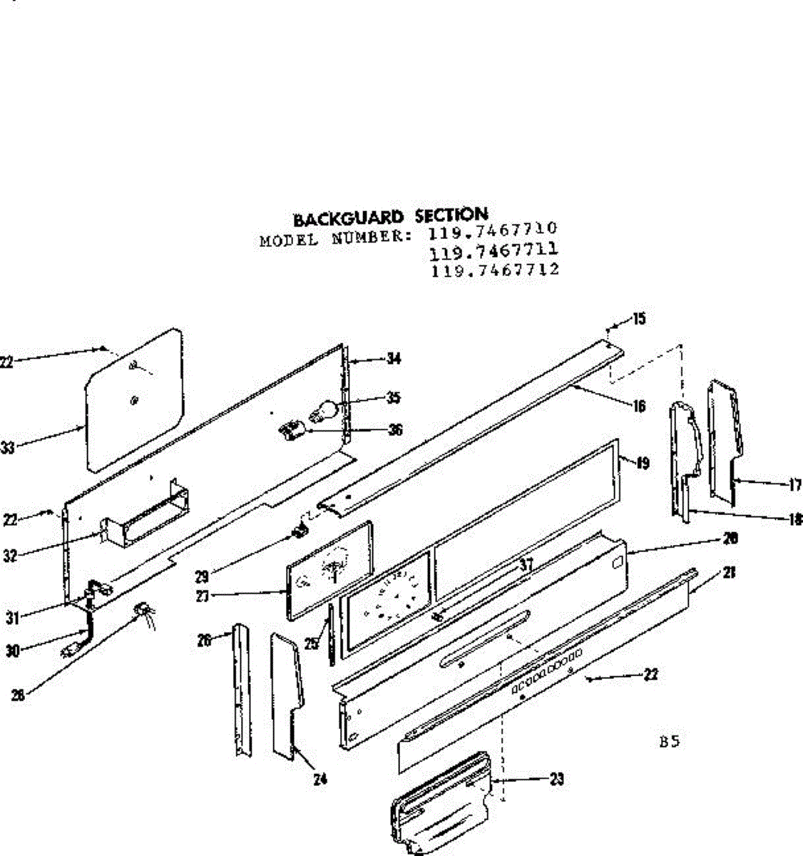 Parts for Kenmore 119.7467712 (1197467712, 119 7467712): Backguard Section Parts