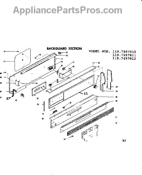 Parts for Kenmore 119.7497810 (1197497810, 119 7497810): Backguard Section Parts