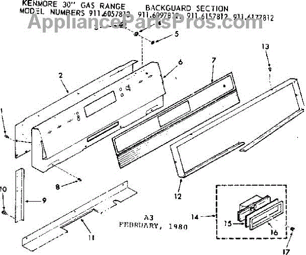 Parts for Kenmore 911.6057812 (9116057812, 911 6057812): Backguard Section Parts