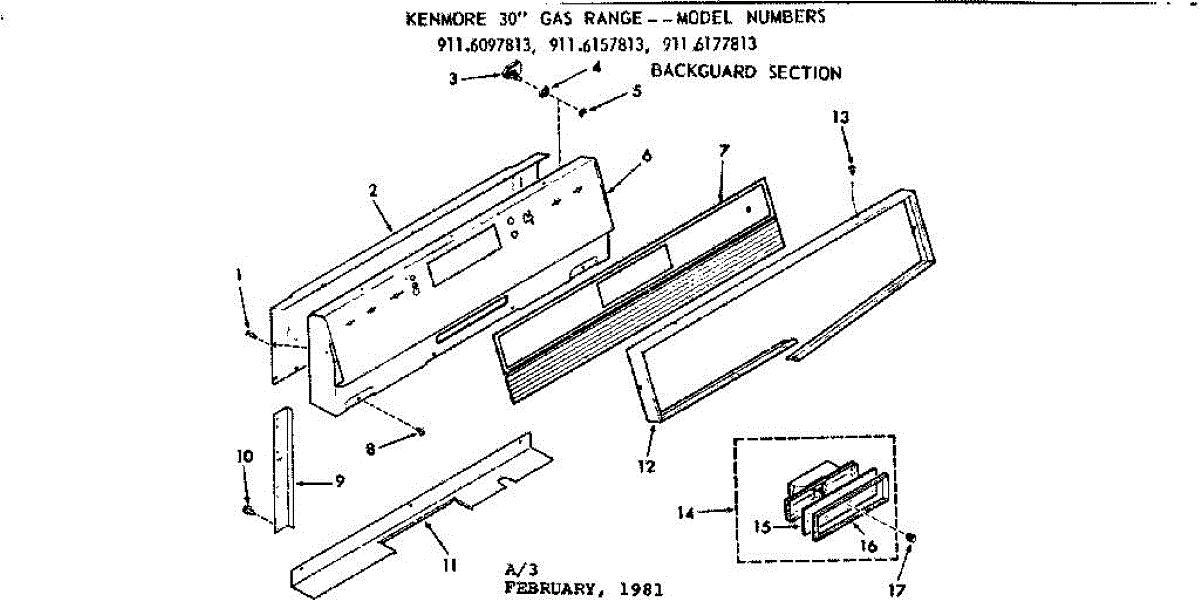 Parts for Kenmore 911.6097813 (9116097813, 911 6097813): Backguard Section Parts