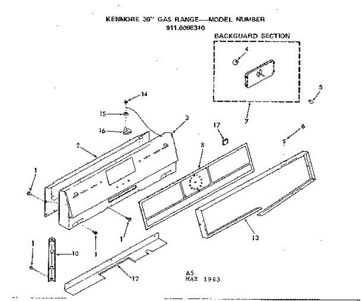 Parts for Kenmore 911.6098310 (9116098310, 911 6098310): Backguard Section Parts