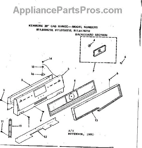 Parts for Kenmore 911.6158210 (9116158210, 911 6158210): Backguard Section Parts