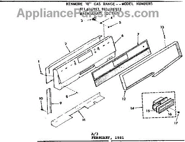 Parts for Kenmore 911.6167813 (9116167813, 911 6167813): Backguard Section Parts