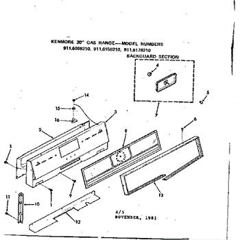 Parts for Kenmore 911.6178210 (9116178210, 911 6178210): Backguard Section Parts
