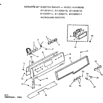 Parts for Kenmore 911.6258111 (9116258111, 911 6258111): Backguard Section Parts