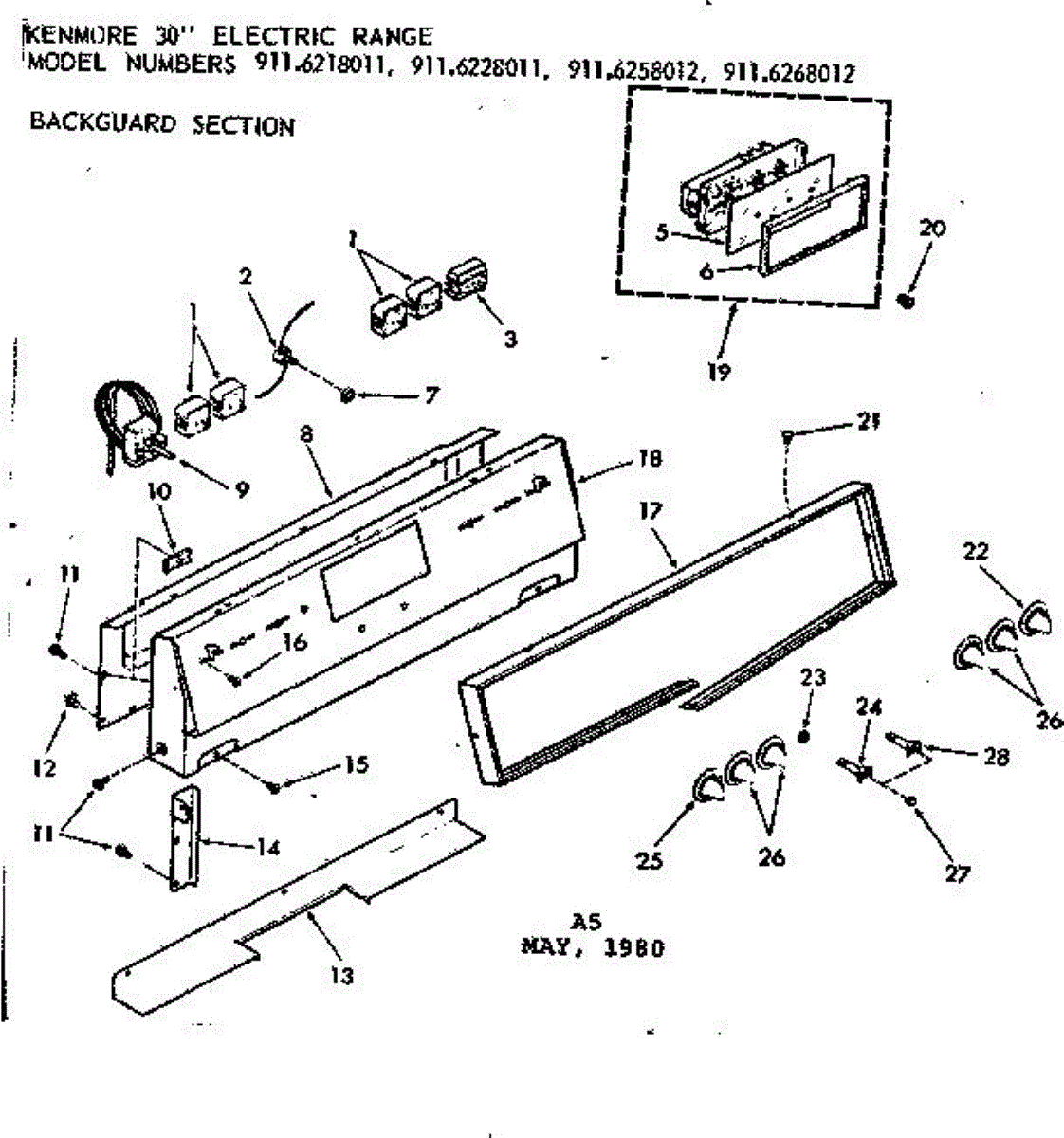 Parts for Kenmore 911.6268012 (9116268012, 911 6268012): Backguard Section Parts