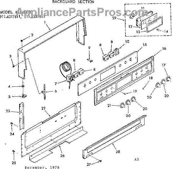 Parts for Kenmore 911.6377611 (9116377611, 911 6377611): Backguard Section Parts
