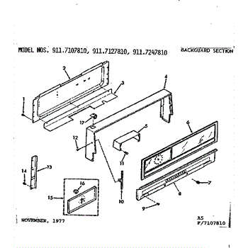 Parts for Kenmore 911.7107810 (9117107810, 911 7107810): Backguard Section Parts