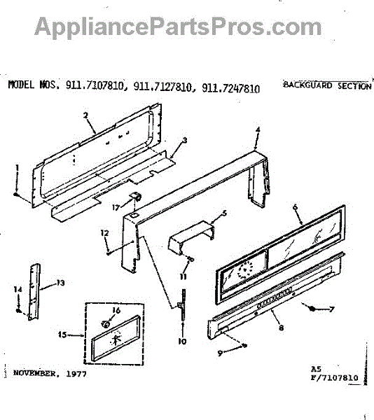 Parts for Kenmore 911.7127810 (9117127810, 911 7127810): Backguard Section Parts