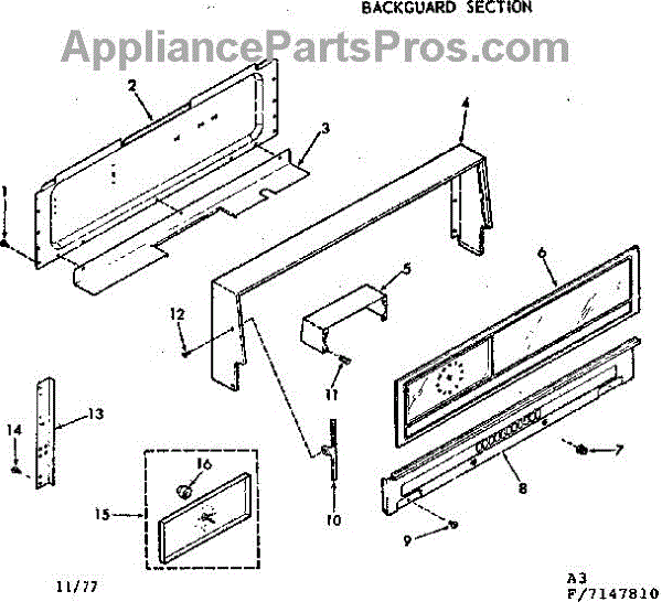 Parts for Kenmore 911.7147810 (9117147810, 911 7147810): Backguard Section Parts