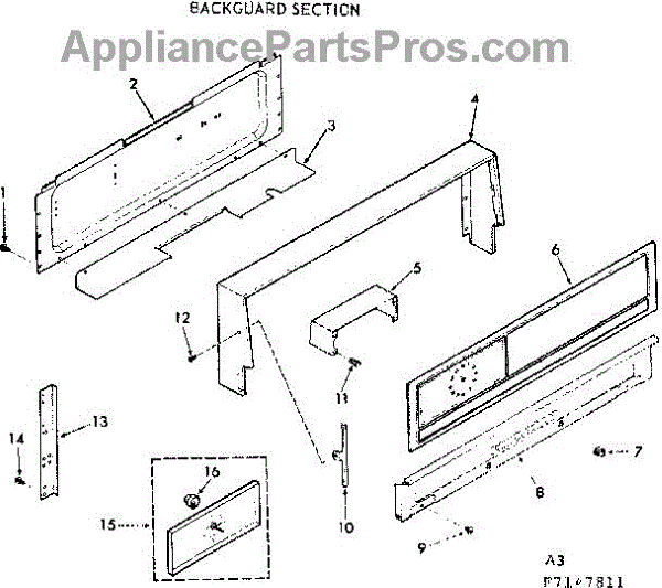 Parts for Kenmore 911.7147811 (9117147811, 911 7147811): Backguard Section Parts