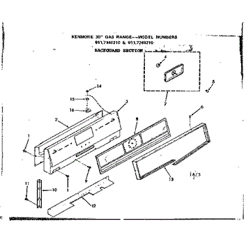 Parts for Kenmore 911.7148210 (9117148210, 911 7148210): Backguard Section Parts