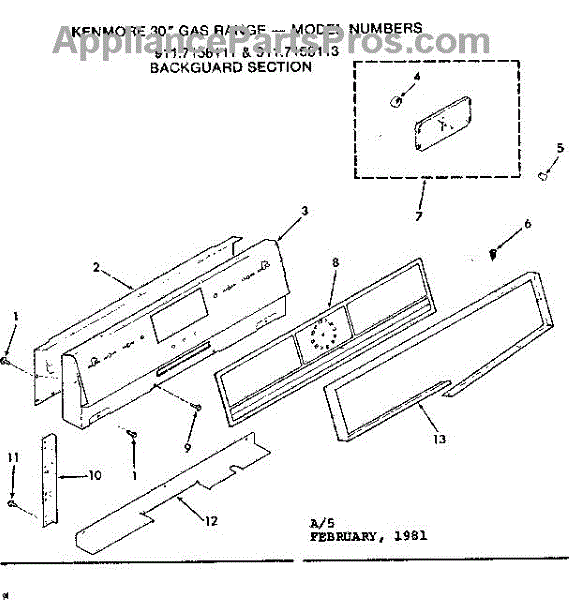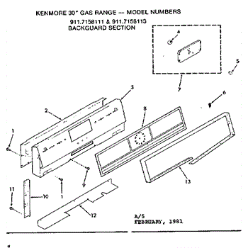 Parts for Kenmore 911.7158113 (9117158113, 911 7158113): Backguard Section Parts