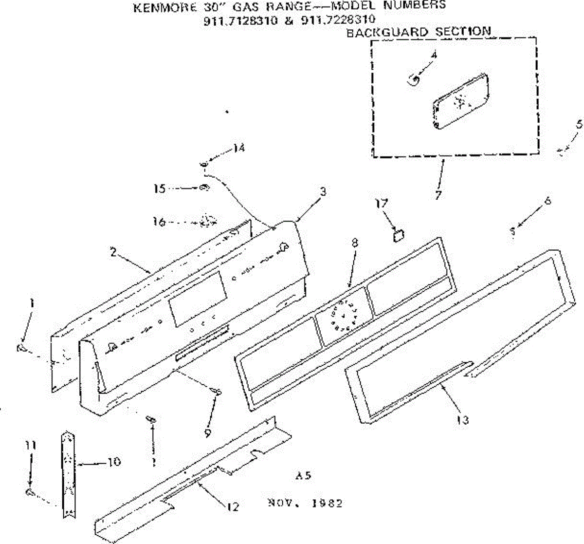 Parts for Kenmore 911.7228310 (9117228310, 911 7228310): Backguard Section Parts